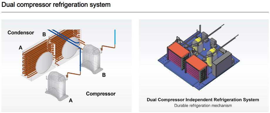 Hệ thống làm lạnh độc lập với 2 bộ máy nén và cơ cấu bay hơi kép